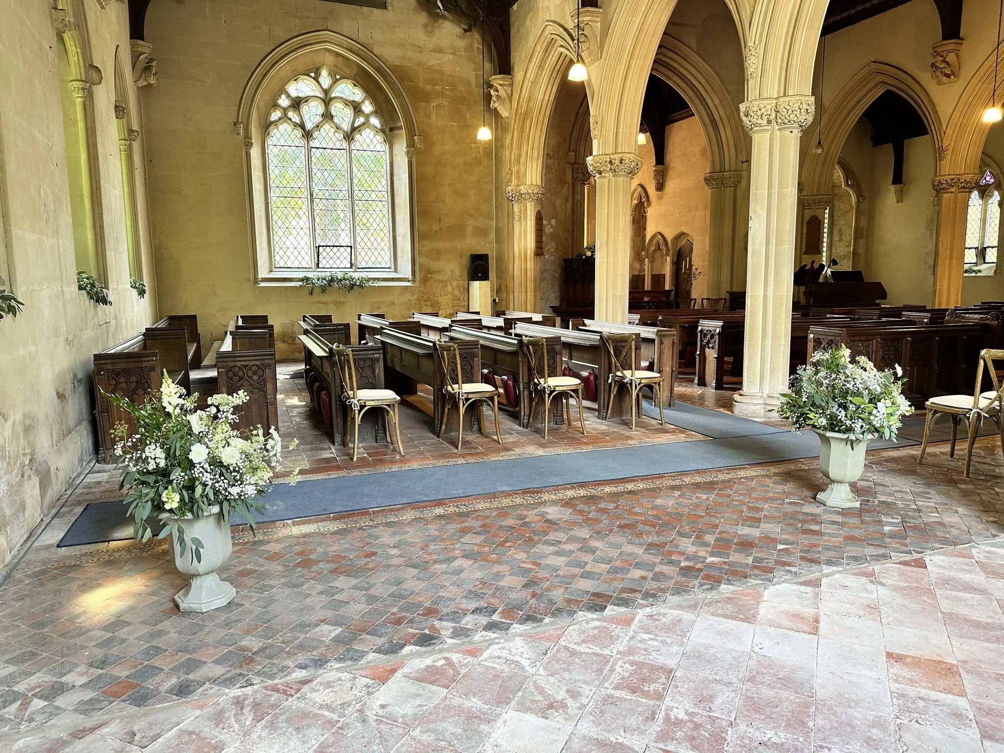 The church is a fully operational Anglican church. Although all church services are open to the public, this church is little used outside of Sunday services and is likely to be available for Christenings and Funerals on most days. It has its own private entrance from Wickham House, which is only a few yards from our front door, The chapel seats about 90 in the pews but with extra chairs at the back, one could easily seat 120. It is sited about 50m from both marquee sites and The Barn.